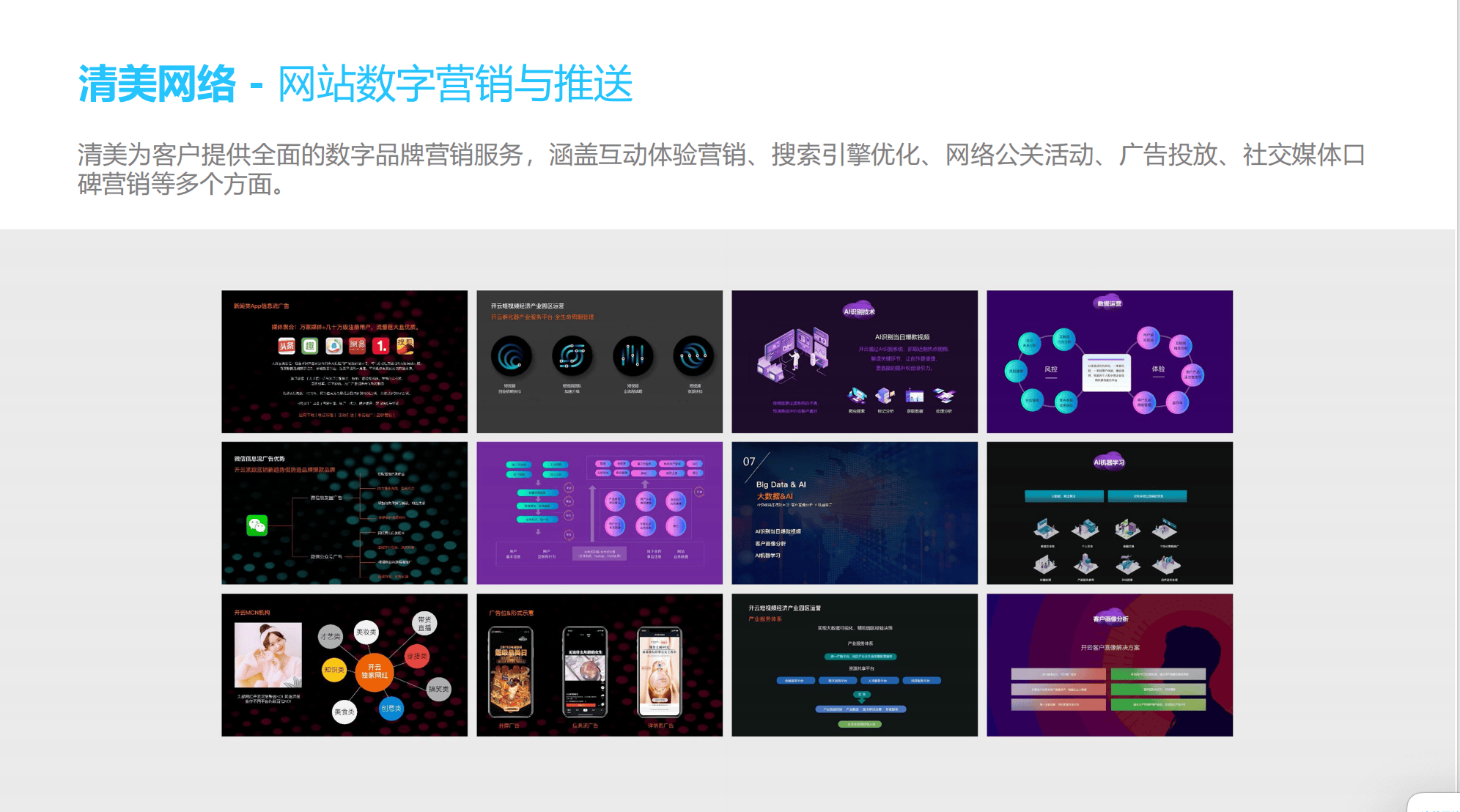 针对不同行业特性,清美未来提供定制化解决方案,在电商、企业官网、B2B平台等领域,通过深厚经验助力企业完成数字化跨越。同时公司将用户体验贯穿始终,借助数据分析、热力图监控等手段优化网站结构与交互流程,提升用户留存率与转化率,实现体验与转化的双重提升。